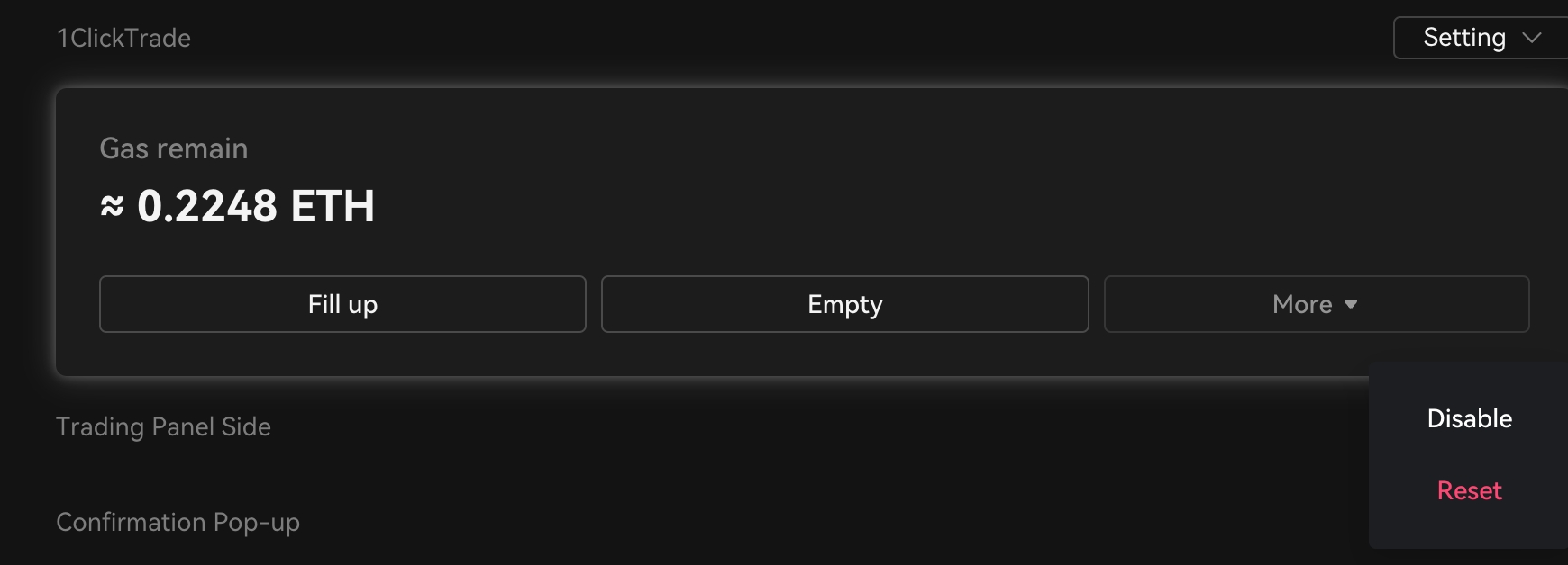Enabling 1ClickTrade can help you eliminate repetitive wallet confirmation operations.
