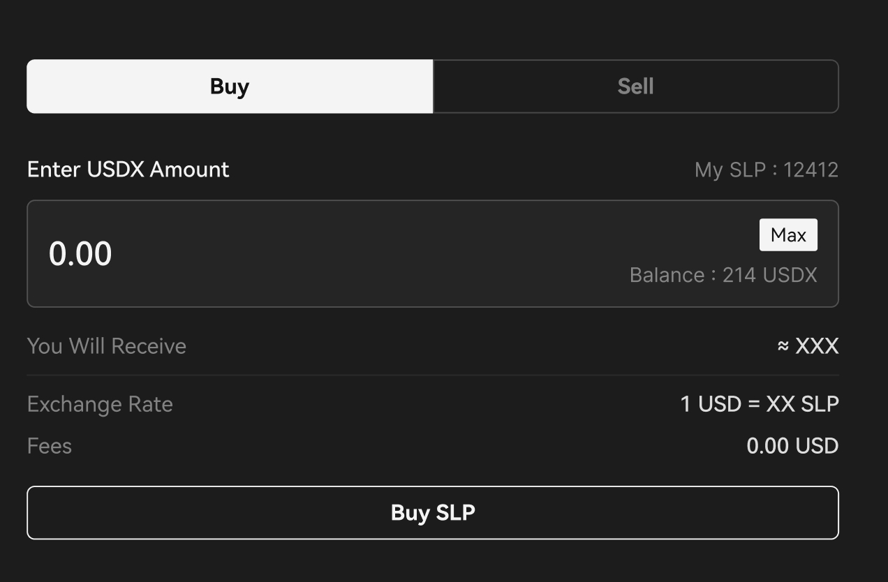 After execution, click "Claim" to receive USDX in exchange for the sold SLP.