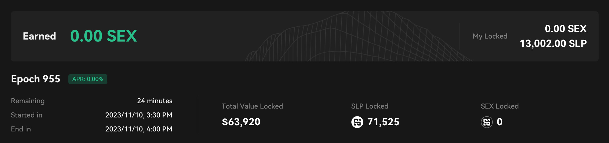 Additionally, the SEX token rewards generated from your staking will appear in the "Unlocked" tab on the right. They will be released linearly during a 365-day distribution period. You can click "Claim All" to collect the already released SEX token rewards.