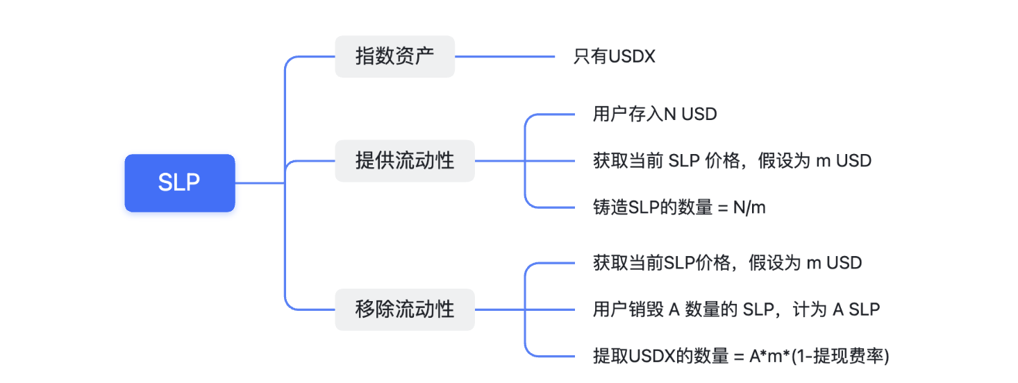您可以在每个周期结束前,选择是否注入流动性池,产生SLP。 SLP 代币需要跟随用户存入资产的价值来进行购买和出售,对于流动性池而言,用户注入流动性时即可铸造对应价值的LP 代币; 用户提取流动性时销毁LP 代币,根据销毁LP 代币的价值来取出对应的资产。 需要注意的是,当用户进行SLP交互时,其资产并未与流动性池直接发生交互,而是需要等待当前纪元结束才能真正完成购买出售。 当前,我们仅支持使用Substance平台的USDX作为资产投入流动性池,用户可以随时将USDC、USDT等稳定币对转换为USDX。