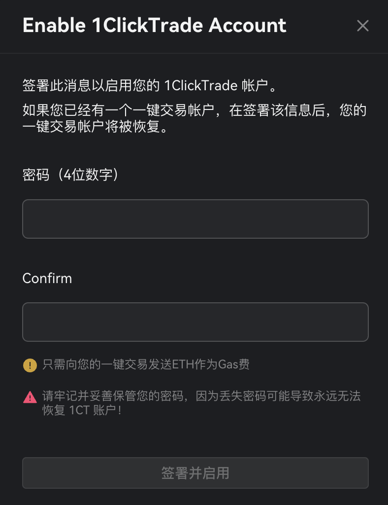 启用一键交易,可以帮您免去重复的钱包确认操作。