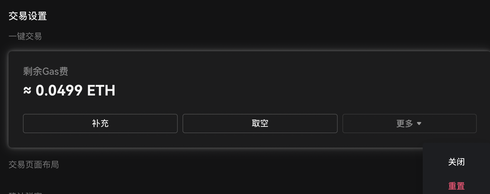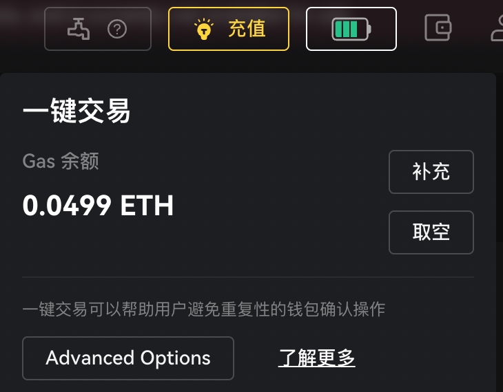 如果您是首次启用一键交易,您的燃气余额会是0。