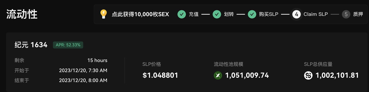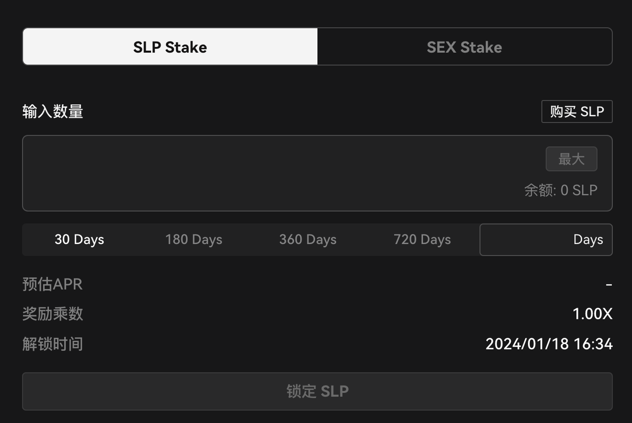 > 质押SLP和SEX都可以获得SEX代币奖励，二者仅有奖励数量上的不同。